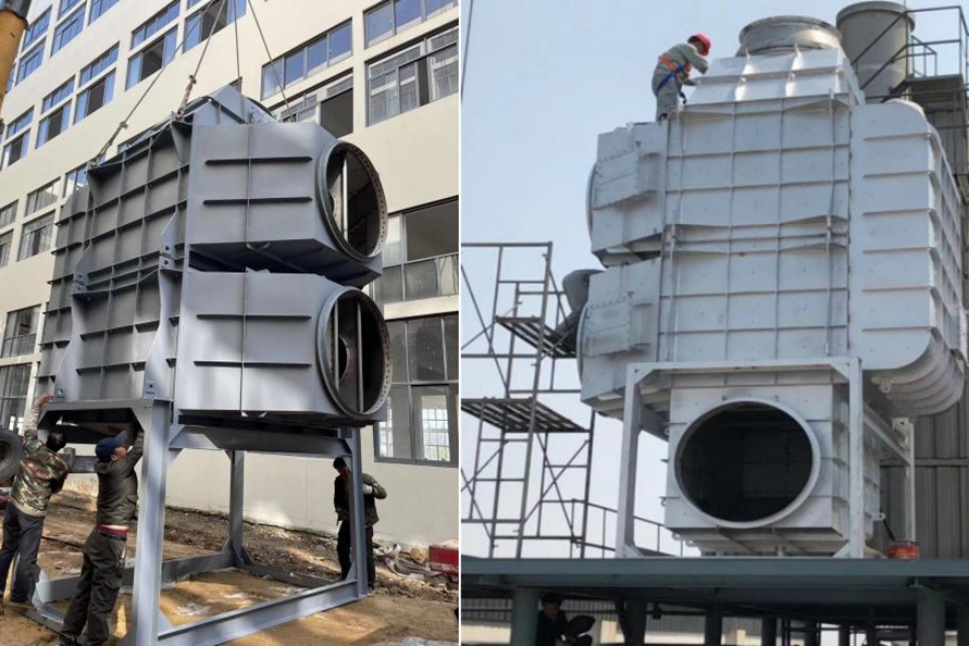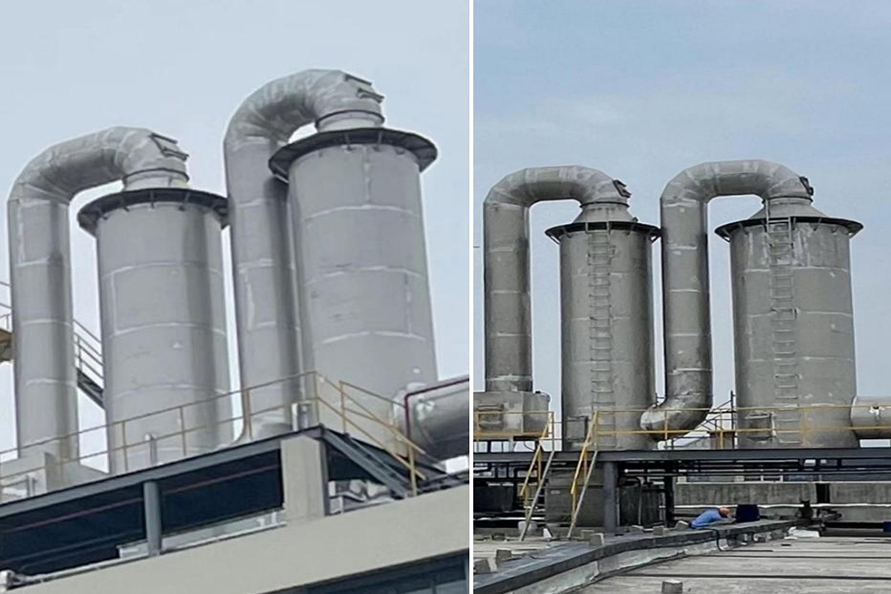 在磷化工、石墨、有色冶煉等行業(yè),生產(chǎn)排放的飽和濕煙氣與低溫環(huán)境空氣接觸時(shí),在煙氣溫度下降過(guò)程中,煙氣中的水蒸氣過(guò)飽和凝結(jié),凝結(jié)水滴折射和散射光線,使煙羽呈白色或灰色,稱為濕煙羽。由于冬季溫度較低,相關(guān)問(wèn)題的環(huán)保投訴較多。那么,有哪些種煙氣脫白技術(shù)?各種煙氣脫白的技術(shù)原理是怎樣的?1、冷凝相變煙氣脫白技術(shù)冷凝相變煙氣脫白原理為:煙氣經(jīng)濕法脫硫后,含濕量上升,為B狀態(tài),進(jìn)入換熱消霧模塊后。干態(tài)空氣A入換熱消霧模塊兩者交換后,A溫度上升,含濕量不變,相對(duì)濕度降低,處于C。B煙氣,溫度降低,相對(duì)濕度不變,含濕量降低,液滴析出,轉(zhuǎn)為D。D和受熱C流出換熱消零模塊,在氣室中混合,使D溫度下降,濕度降低:C溫度上升,相對(duì)濕度上升,兩種狀態(tài)的煙氣混合,最終達(dá)到F狀態(tài),AF連線始終處于不飽和狀態(tài),因此,不會(huì)出現(xiàn)可見(jiàn)白煙或霧氣團(tuán)。可以看出,冷凝混風(fēng)技術(shù)是煙氣脫白的較好技術(shù)路線,特別是在北方寒冷地區(qū),單純的煙氣再熱很難消除煙囪白煙。2、低電耗離子束煙氣脫白技術(shù)低電耗離子束煙氣脫白原理為:高速電子射流擊穿煙氣,產(chǎn)生正負(fù)離子體基團(tuán),煙氣中氣溶膠、飽和水滴、微小顆粒物在離子束的撞擊下,不斷發(fā)生凝聚效應(yīng),顆粒物和水滴快速凝聚成團(tuán),在重力作用下,落到離子束除變器底部流入脫硫塔或廢水收集池,達(dá)到降解顆粒物,氣溶膠和水零的目的。廢氣中的氨氧化物,由高速電子束提供能量,快速與氨氣發(fā)生還原反應(yīng),生成副產(chǎn)物水。低電耗離子束煙氣脫白優(yōu)點(diǎn):1.放電產(chǎn)生的離子體中,電子能量高,幾乎可以和所有的惡臭氣體分子作用。2.反應(yīng)快,不受氣速限制。采用防腐蝕材料。3.用電成本低,操作極為簡(jiǎn)單,無(wú)需派專職人員看守,基本不占用人工費(fèi)。4.設(shè)備啟動(dòng)、停止十分迅速,隨用隨開,不受氣溫的影響。